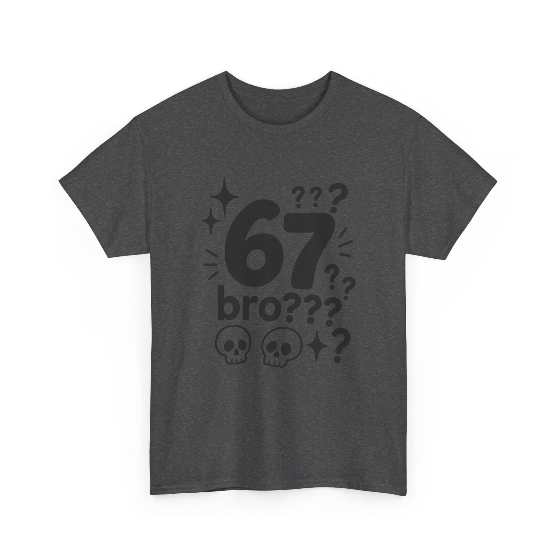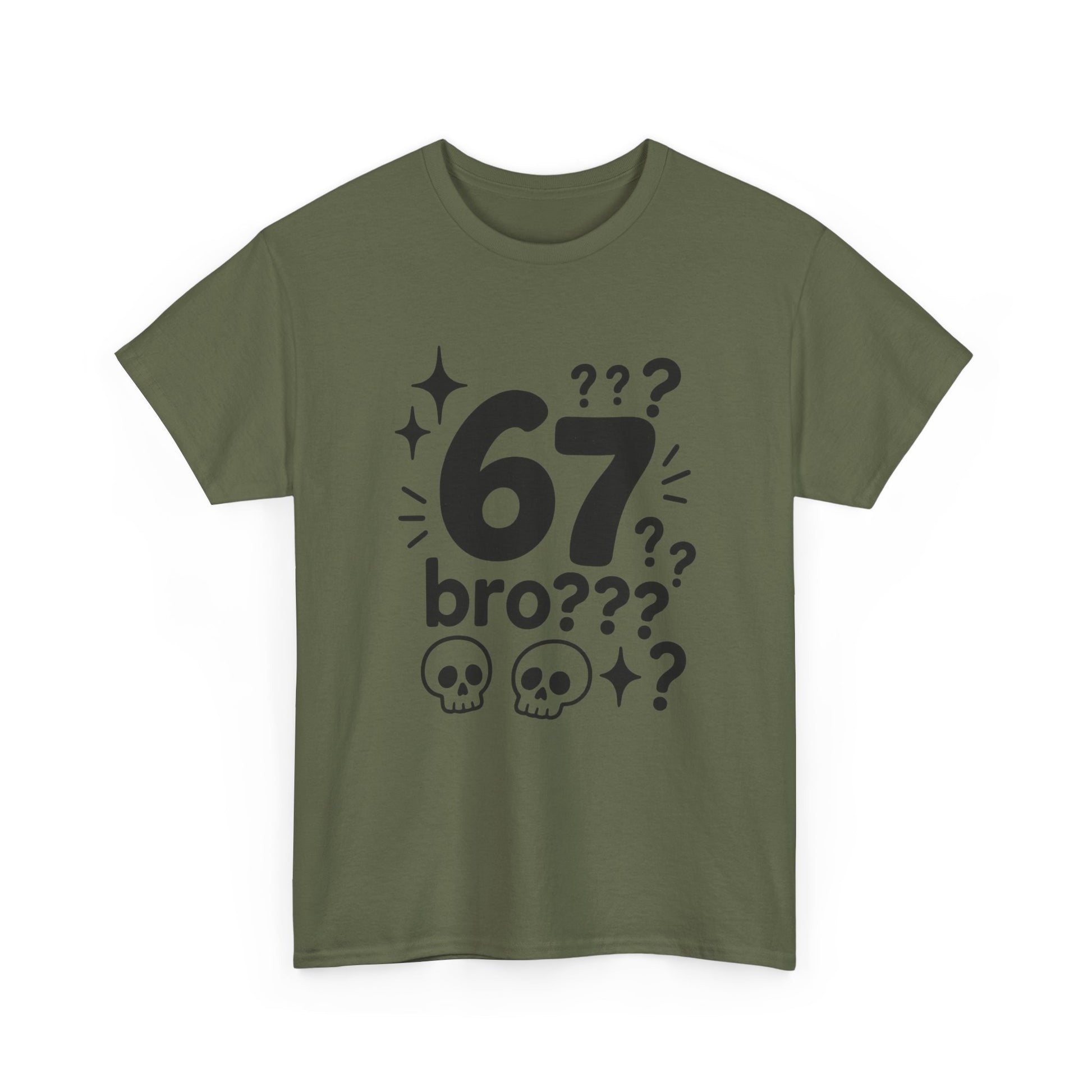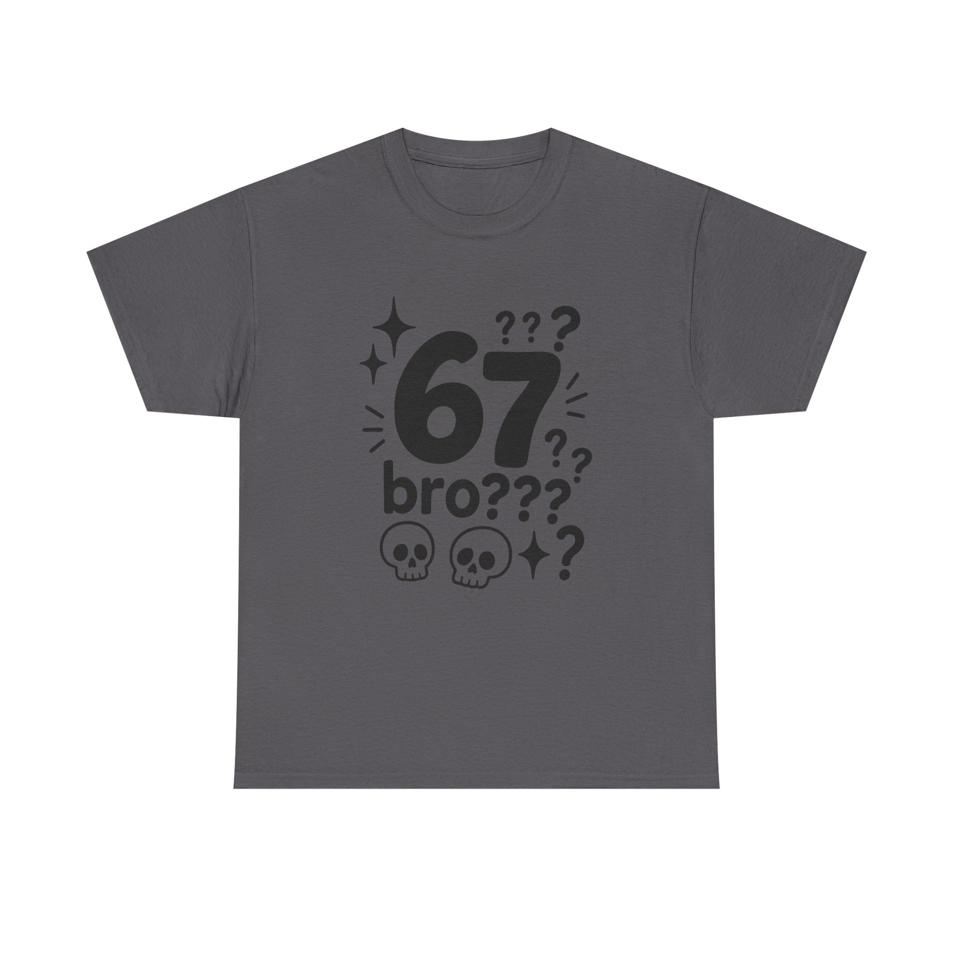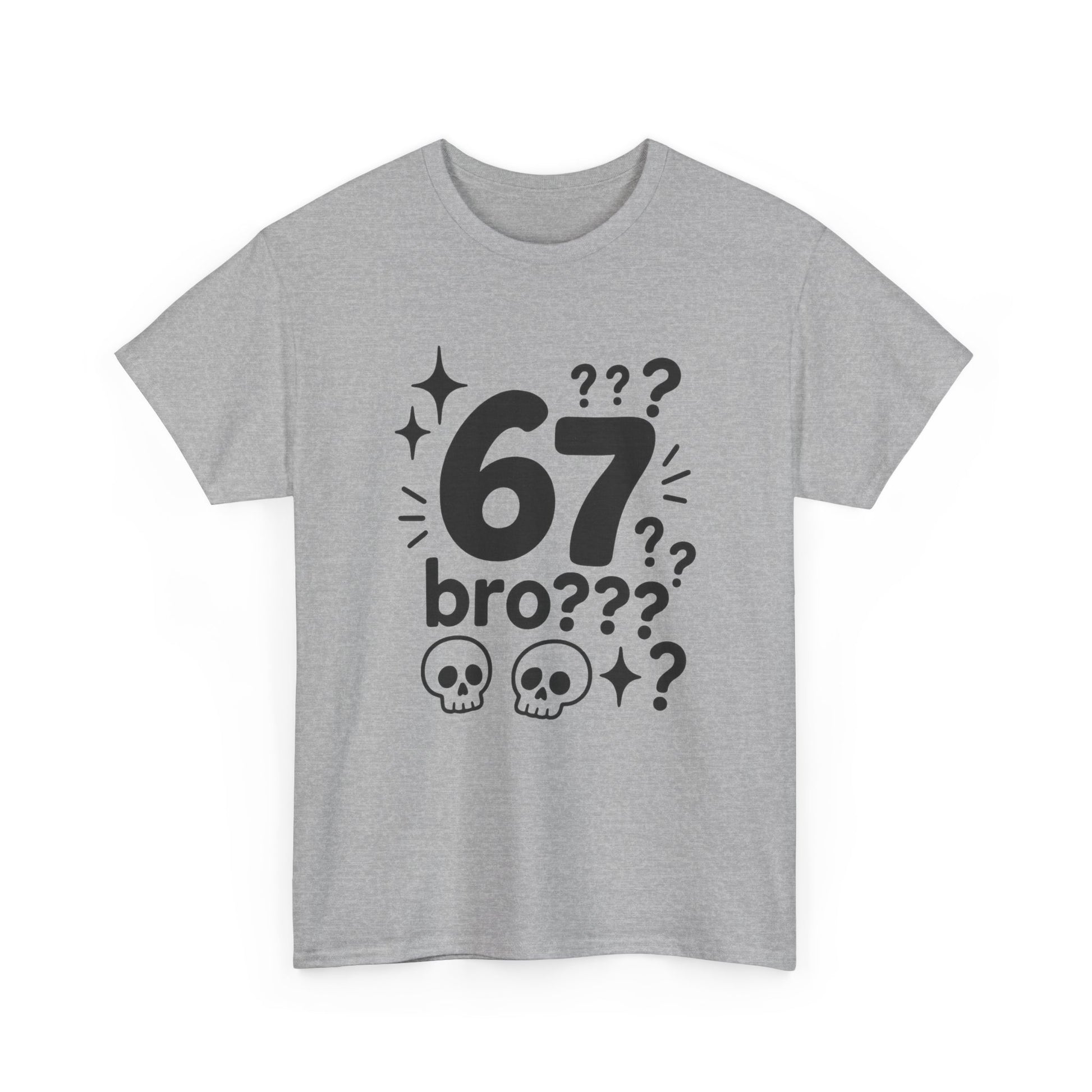 T-Shirt — "67 bro???" Graphic Tee with Skull Icons