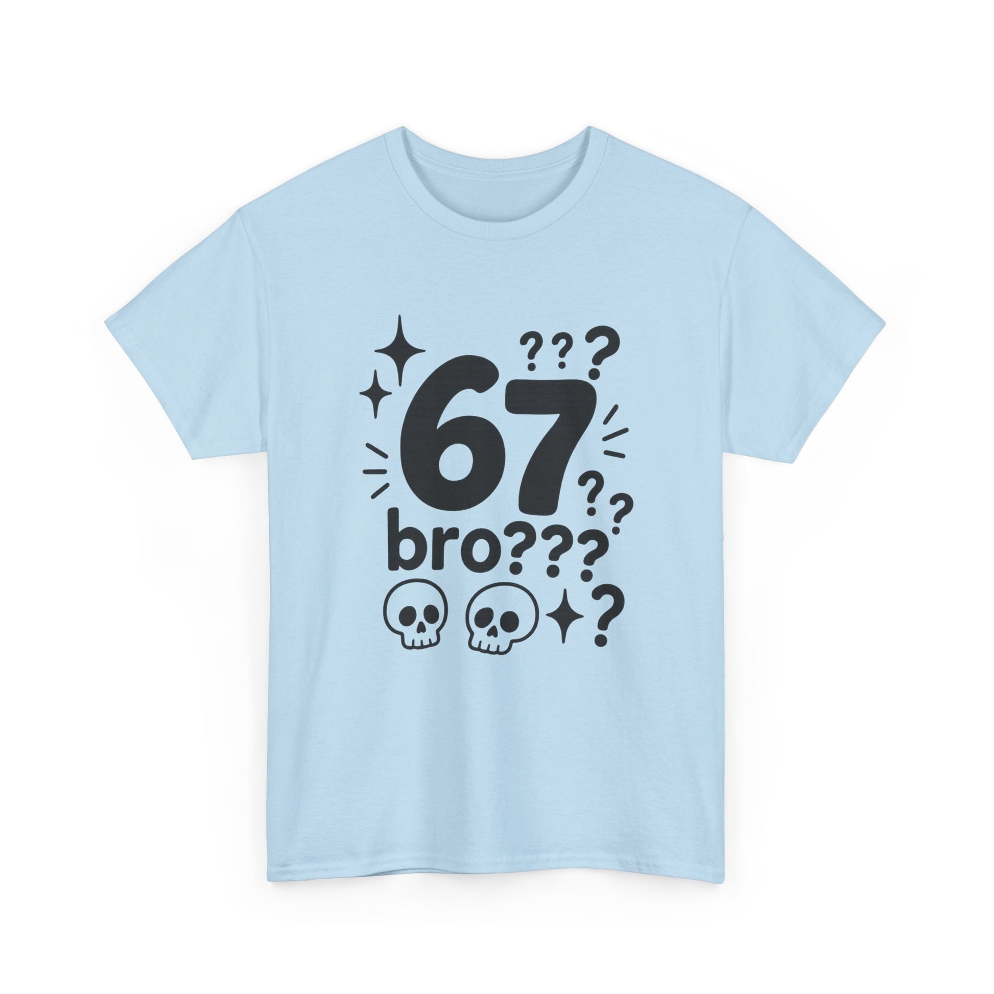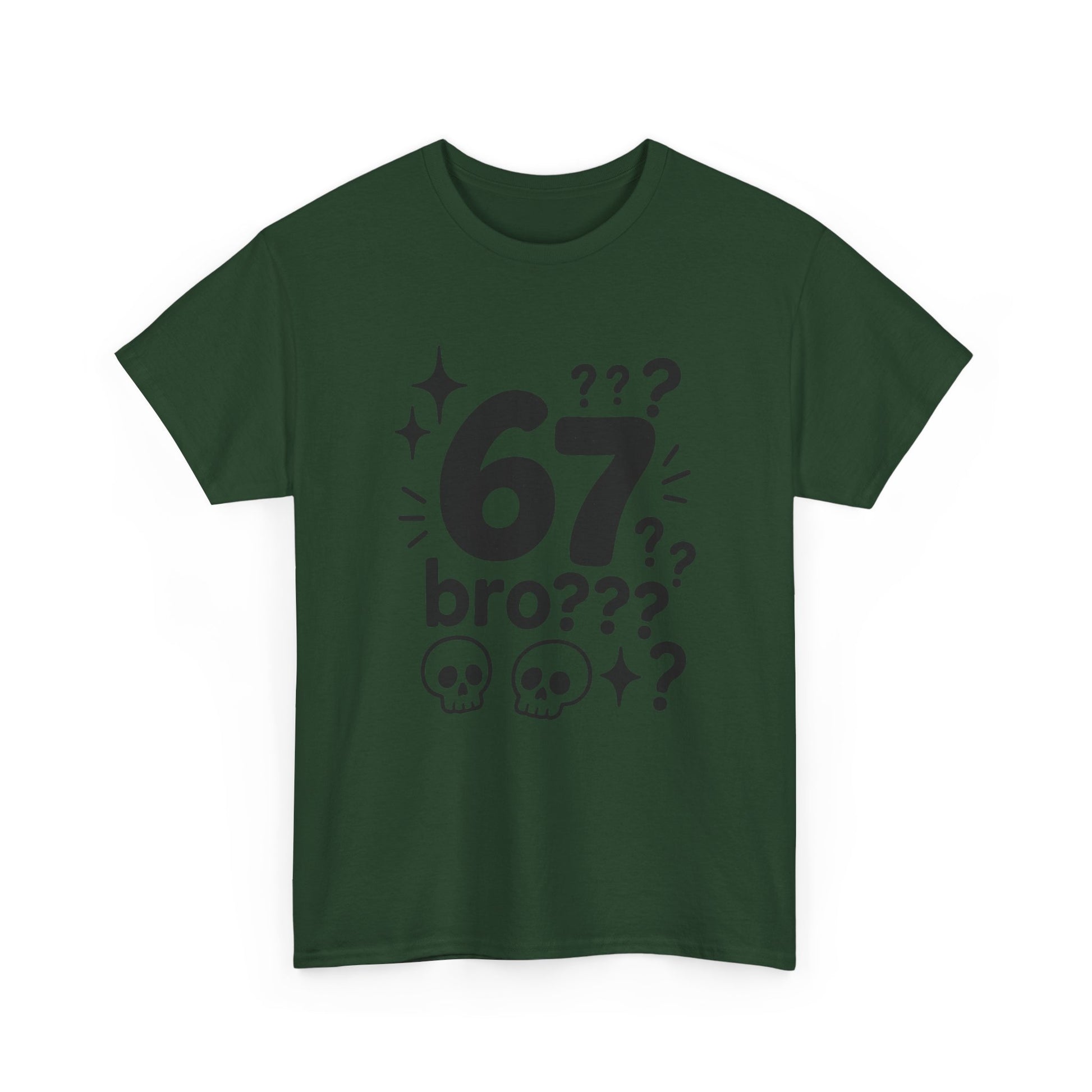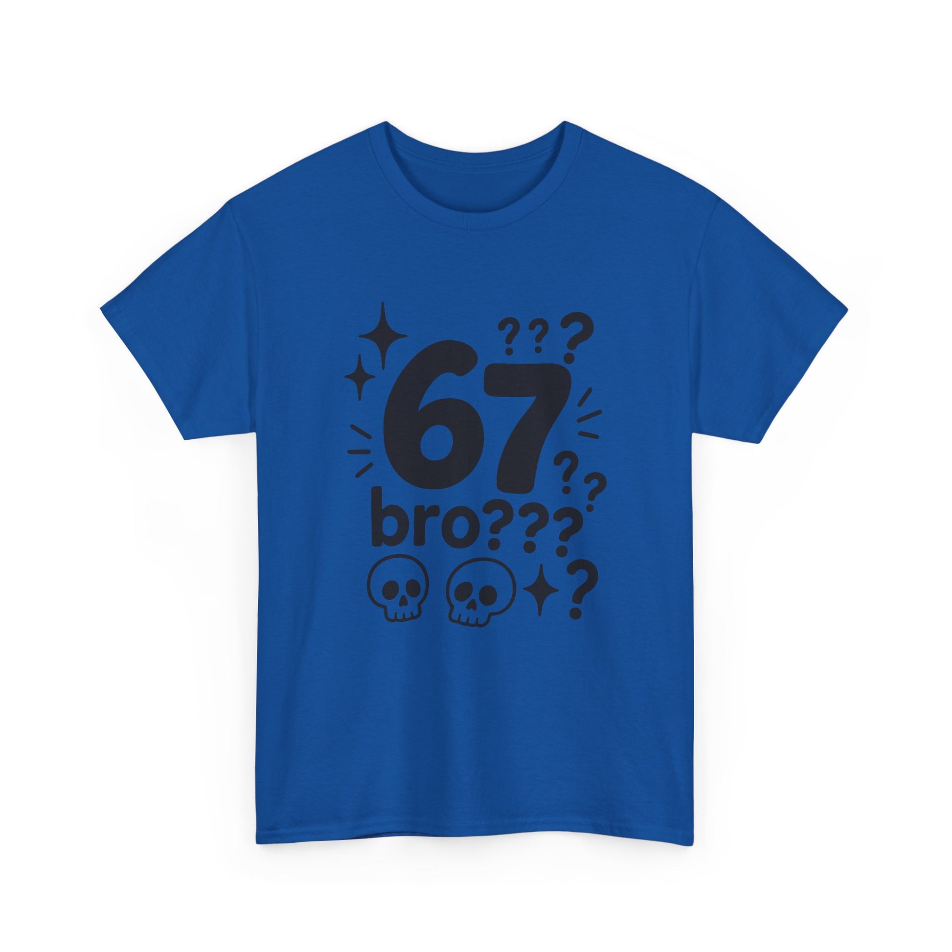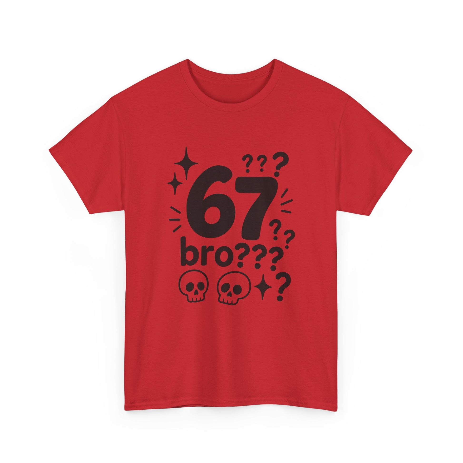 T-Shirt — "67 bro???" Graphic Tee with Skull Icons